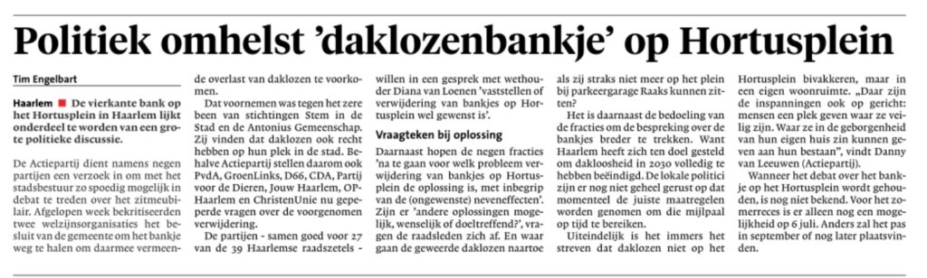 De open brief aan de gemeente Haarlem van Stem in de Stad, Wijkcentrum Binnensteeds en de Antonius Gemeenschap heeft tot ophef geleid binnen de gemeenteraad en verschillende partijen hebben om opheldering gevraagd bij het stadsbestuur. Een en ander valt te lezen in een artikel in het Haarlems Dagblad. Wij zijn dankbaar en verheugd over deze politieke bijval!