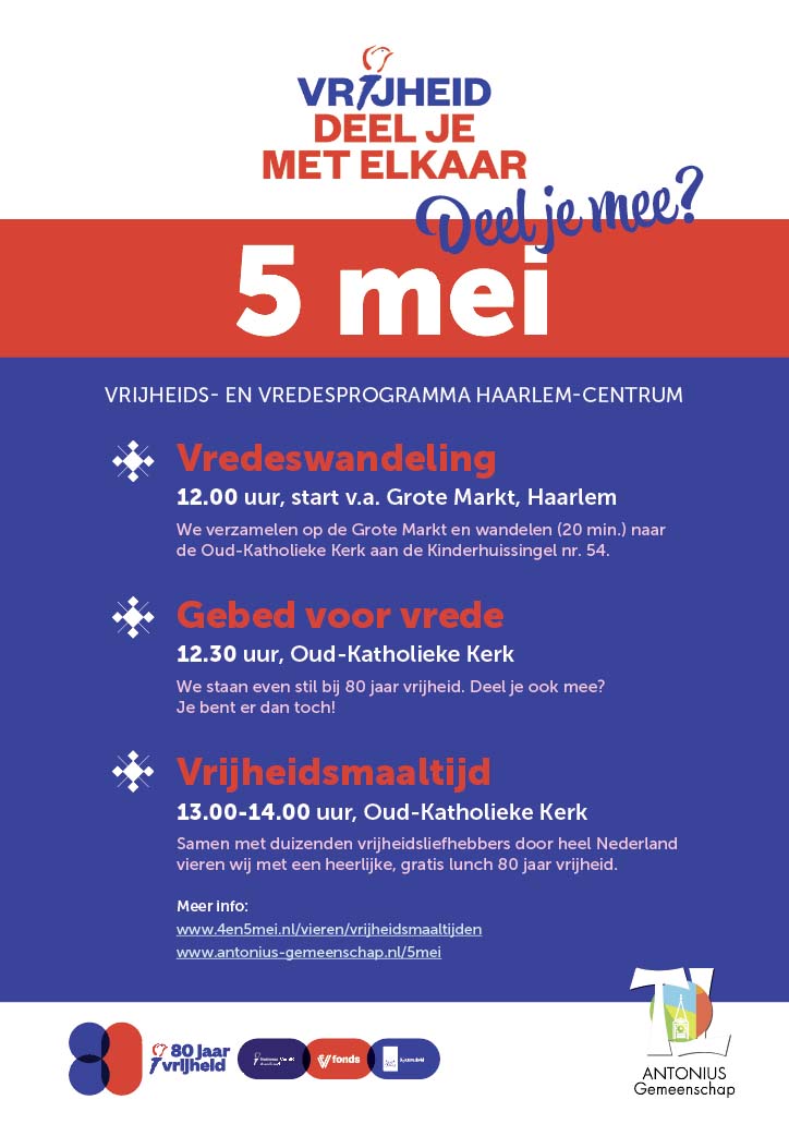 5 mei staan we stil bij 80 jaar vrijheid! Samen met Nationaal Comité 4 en 5 mei organiseert de Antonius-Gemeenschap een van de honderden vrijheidsmaaltijden die in Nederland gelijktijdig zullen […]