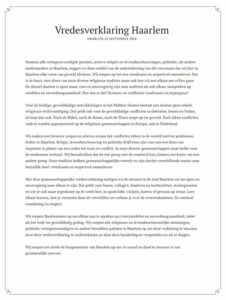 In 2018 nam de Antonius Gemeenschap het initiatief om een intentieverklaring op te stellen die oproept tot ” tot een vreedzaam en respectvol samenleven. Dat is de basis, niet alleen van onze diverse religieuze tradities maar ook hoe wij met elkaar om willen gaan”.