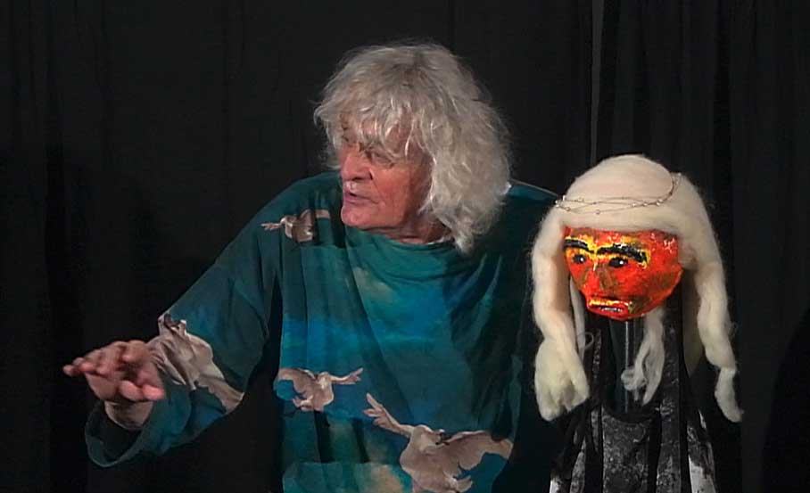 Peter Vermaat (spoken-word preformer, dichter en verteller) vertelt haar levensverhaal, beijgestaan door zijn maskers en levensgrotepoppen, én door Emma van Dobben, die als troubadour op trommel, eenhandsfluit, lier, rebec en draailier de middeleeuwse laat herleven.